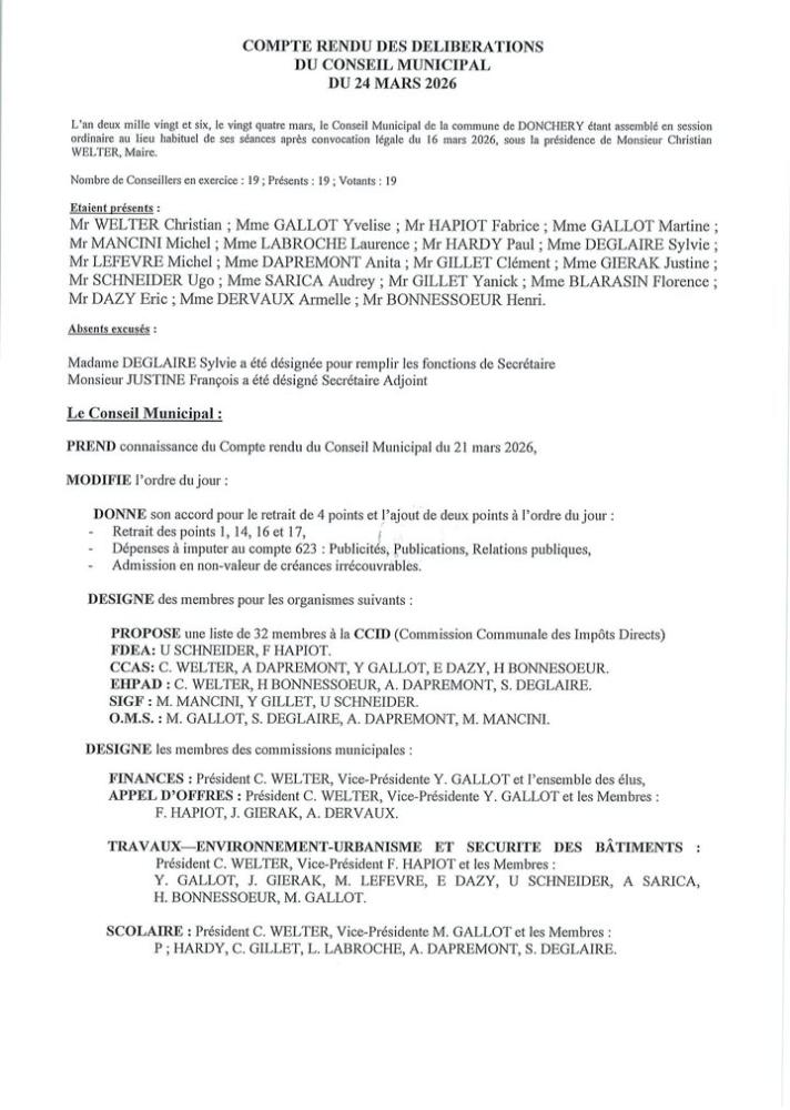 Veuillez trouver ci-dessous le compte-rendu du conseil municipal du 24 mars 2026