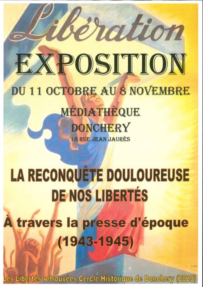 Du 11 octobre au 8 novembre 2025, la médiathèque de Donchery vous propose une exposition sur la libération. Retrouvez l'affiche en cliquant ici
