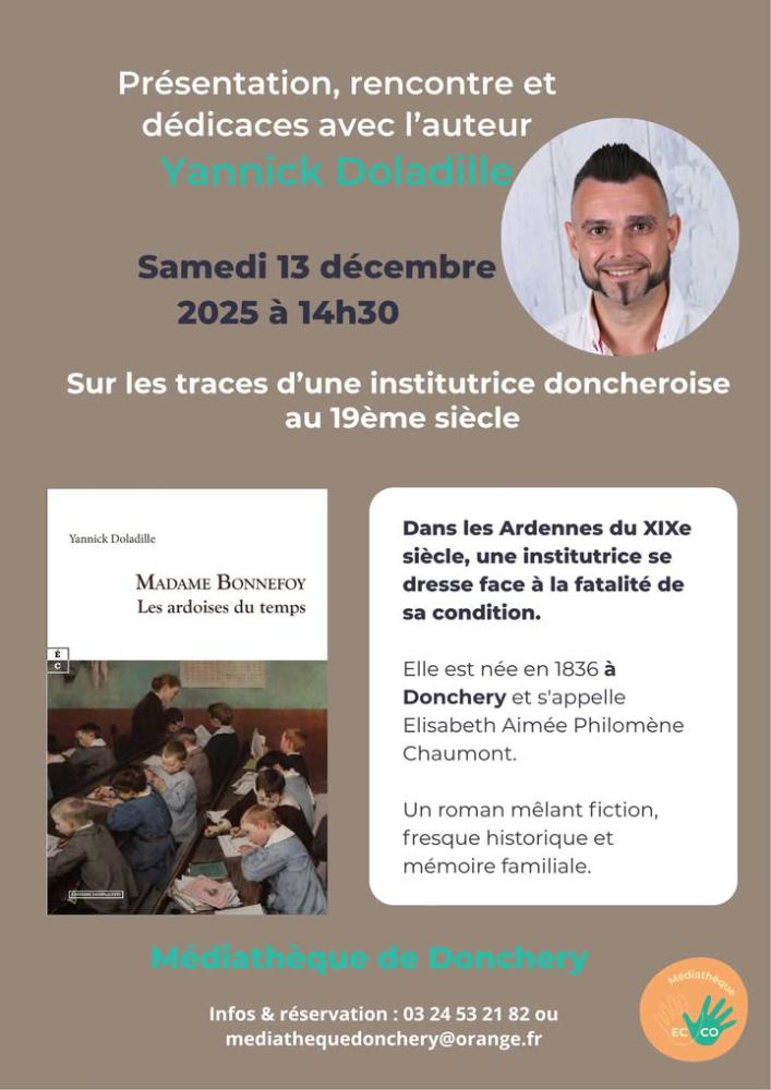 Réservation au 03 24 53 21 82 ou au mediathequedonchery@orange.fr
